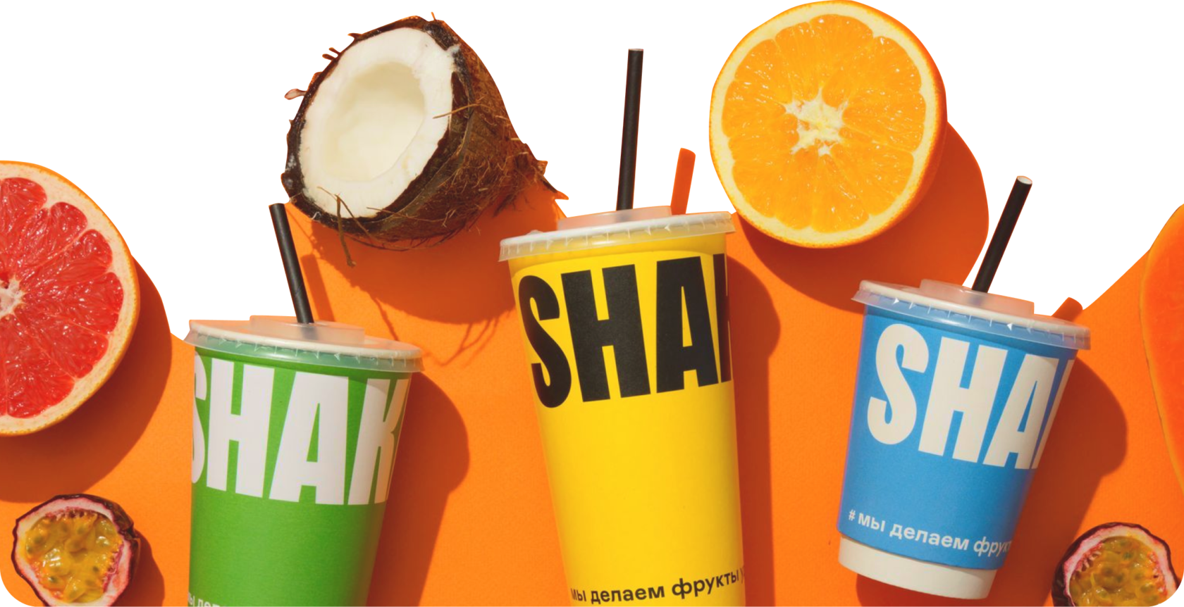 малина, маракуйя, банан, апельсиновый фреш